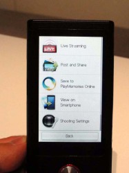 無線LANで飛ばすにはアクセスポイントの設定が必要になるが、それ以降は電源を入れてアップロード先を選べばそれだけで無線LAN経由でアップロードができてしまう。本機からコメントの入力も可能で、その内容は画面上で確認できるのだから便利この上ない。内蔵メモリーは8GBで、レンズは固定焦点。LEDライトも搭載する。価格は250ドルで、すでにソニーストアで販売を開始しているという。