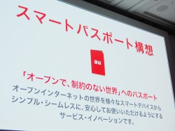 既報の通り、2012年のau 新製品および新サービスの発表会を行ったKDDI。会場には同社 代表取締役社長 田中孝司氏が登壇し、スマートフォンを軸にした新スローガン「あたらしい自由。」を掲げた“スマートパスポート構想”を強くアピールした。