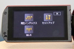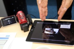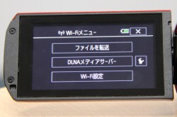 HF M52はWi-Fi(11b/g/n準拠)を内蔵し、DLNAサーバー機能も搭載。アドホック接続やWPSにも対応する。HF M52で撮影した映像をiPhoneに転送し、iPhone経由で動画共有サイトにアップロードして簡単に共有したり、リビングに居ながら書斎のPCへ動画データを保存したりすることが可能だ。DLNA経由で、DLNAプレーヤー機器からムービーカメラ内の動画を再生することもできる。