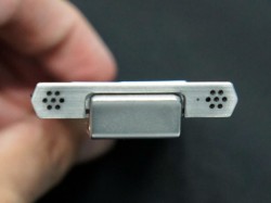 前述の通り最薄部約6.4mmという薄さと約50gという軽さが大きな特徴。背面にはクリップが付いており、胸ポケットや手帳などに取り付けて使用することができるようになっている。
