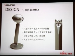 小脇氏ははじめに、ECLIPSE TDシリーズが2001年4月、21世紀の幕開けと共に誕生したことを振り返り、その後、7/5/3の各シリーズとサブウーファーを展開してきたことを紹介。小脇氏は「10年間目指し続けてきたのは『正確な音』。この重要性を訴え続けているが、いまだに誤解されている場合がある」とし、改めてECLIPSE TDシリーズの考え方を紹介した。