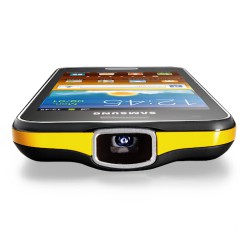 本体にプロジェクターを内蔵したAndroidスマートフォン。同社では、本体に保存した写真や動画ファイルをプロジェクターで壁面投写して楽しむといった使い方を提案している。