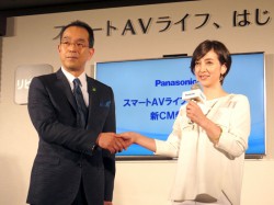 パナソニック AVCマーケティング ジャパン本部は、CMキャラクター滝川クリステルさんが出演する薄型テレビ「スマートビエラ」とブルーレイレコーダー「スマートディーガ」の新作CMを3月9日よりオンエアすることに先駆け、六本木ヒルズで新CMの発表会を開催した。