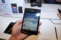 スマートフォンのサイズバリエーションも拡大し、3インチ台から5インチ台まで幅広く選べるサイズを訴求するラインナップ構成となった。3インチ台のコンパクトなモデルは「Xperia SX SO-05D」「F-09D ANTEPRIMA」「ARROWS Me F-11D」の3.7インチ、「AQUOS PHONE st SH-07D」の3.4インチが揃い、5インチ台の端末にも「Optimus Vu L-06D/L-06D JOJO」「ELUGA power P-07D」の2機種がラインナップする。