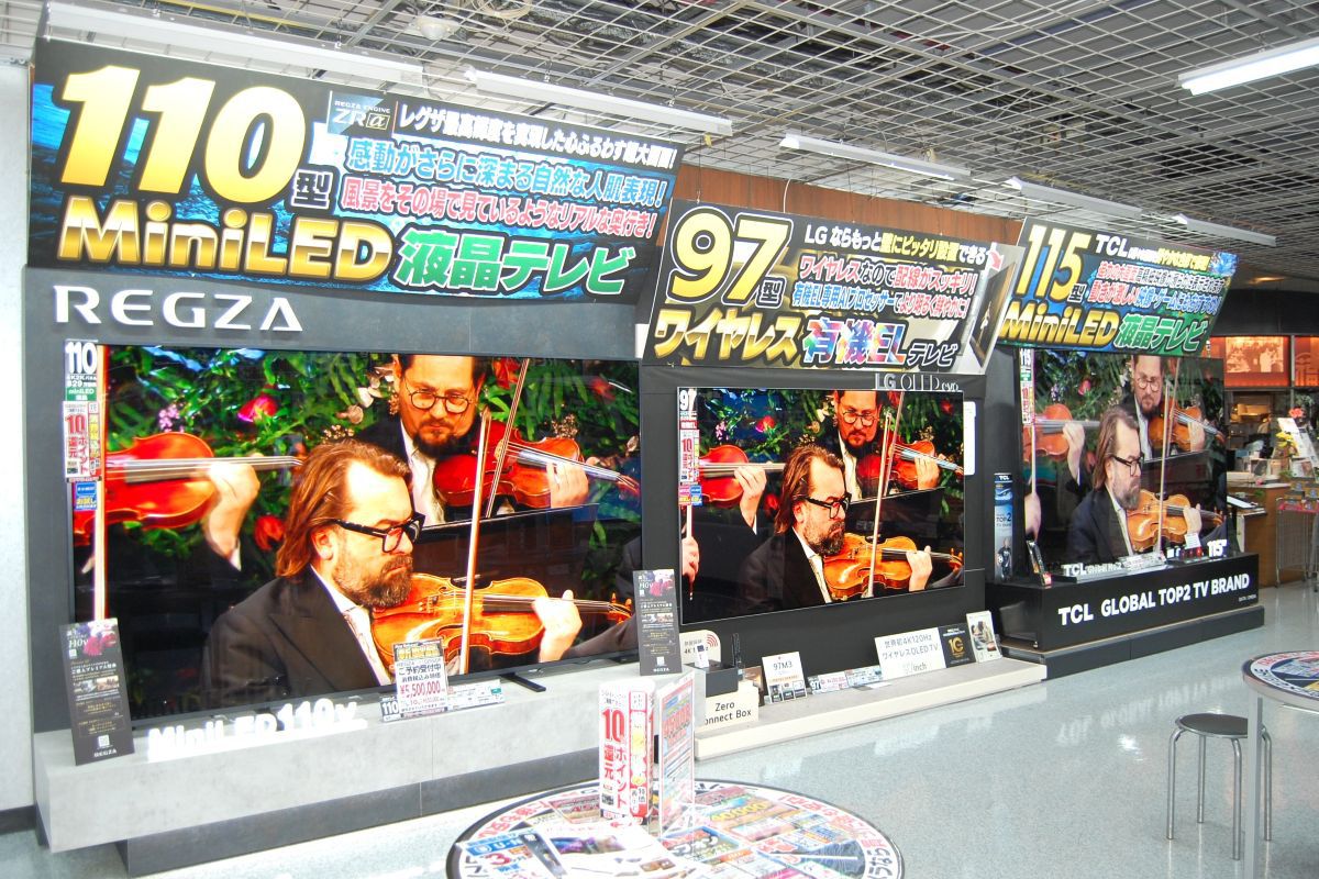 ヨドバシAkibaのテレビ売り場に“超”大型サイズがズラリ。115V型を筆頭に70V型以上が47台