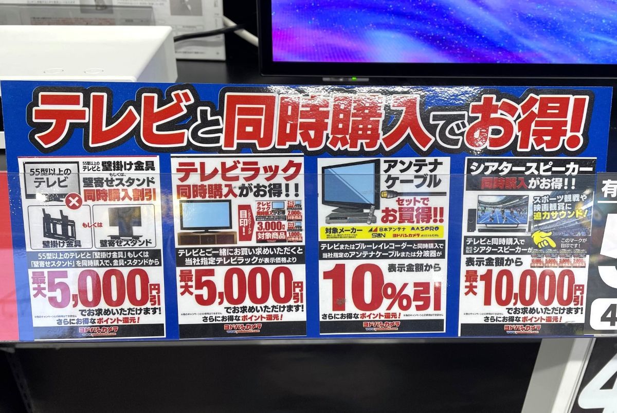 「テレビを購入するのと同じタイミングで購入していただけば、設置も一度に済ますことができます」と同時購入をお薦め。同時購入で割引やポイントアップになる施策も随時実施されている。