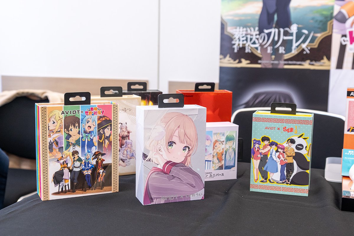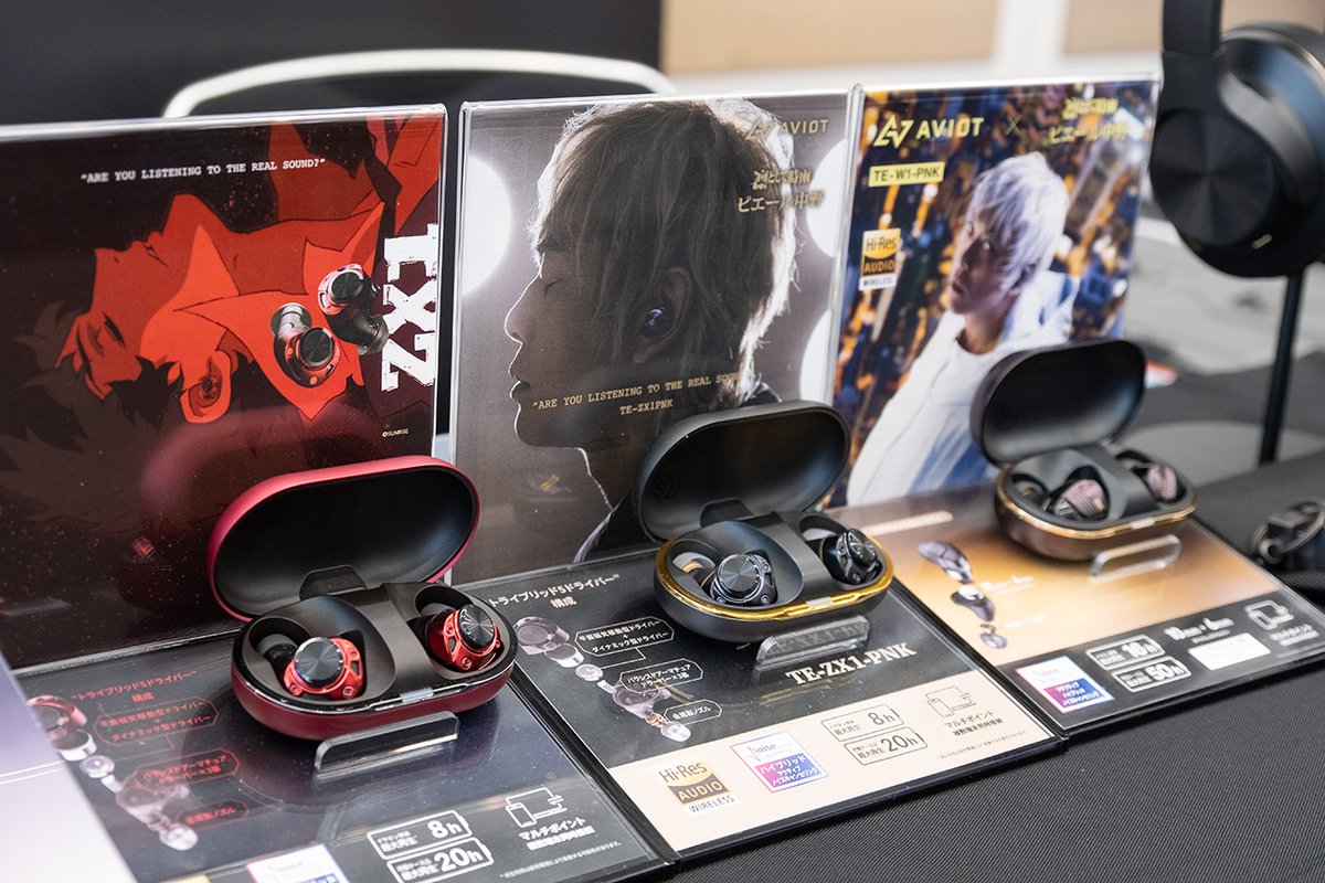 AVIOTは現フラグシップ「TE-ZX1」や、3月に発売したエントリーモデル「TE-U1」などの各種製品に加え、近年精力的に展開しているコラボモデルを用意。基本的にはオンラインでの予約販売製品なため、実際に試すことができる機会となっていた。