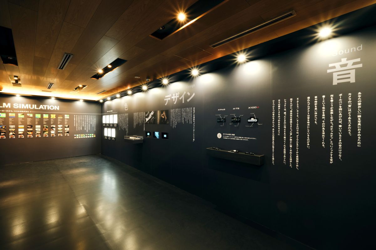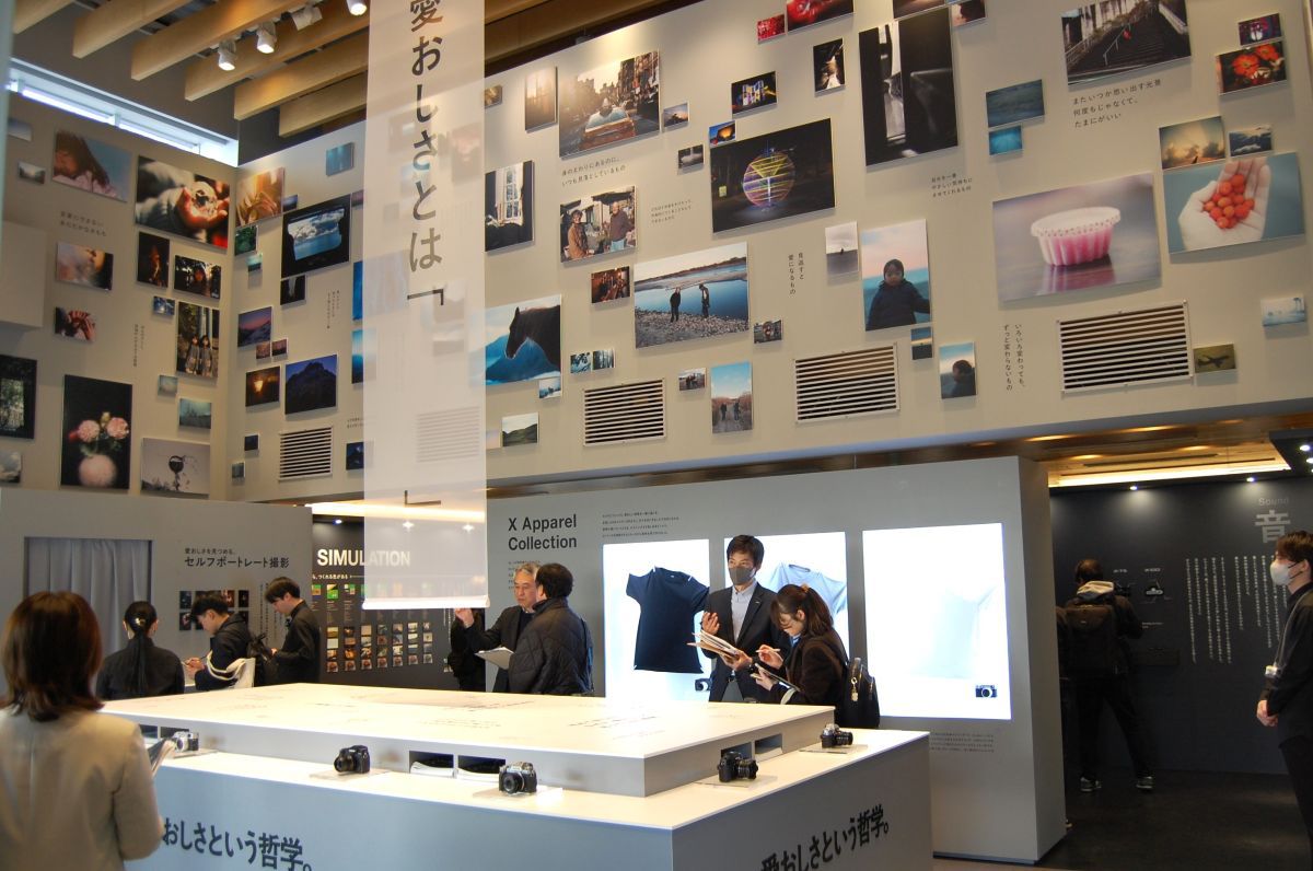 店舗は大きく2つのスペースで構成する。入り口から続く「愛おしさを哲学する間」は、「愛おしさとは。」という問いを投げかけ、自身を考えるヒントになるという約200点の写真や言葉が壁面に並べられている。それらの写真を撮影したXシリーズを手に取り、試してみることができる。