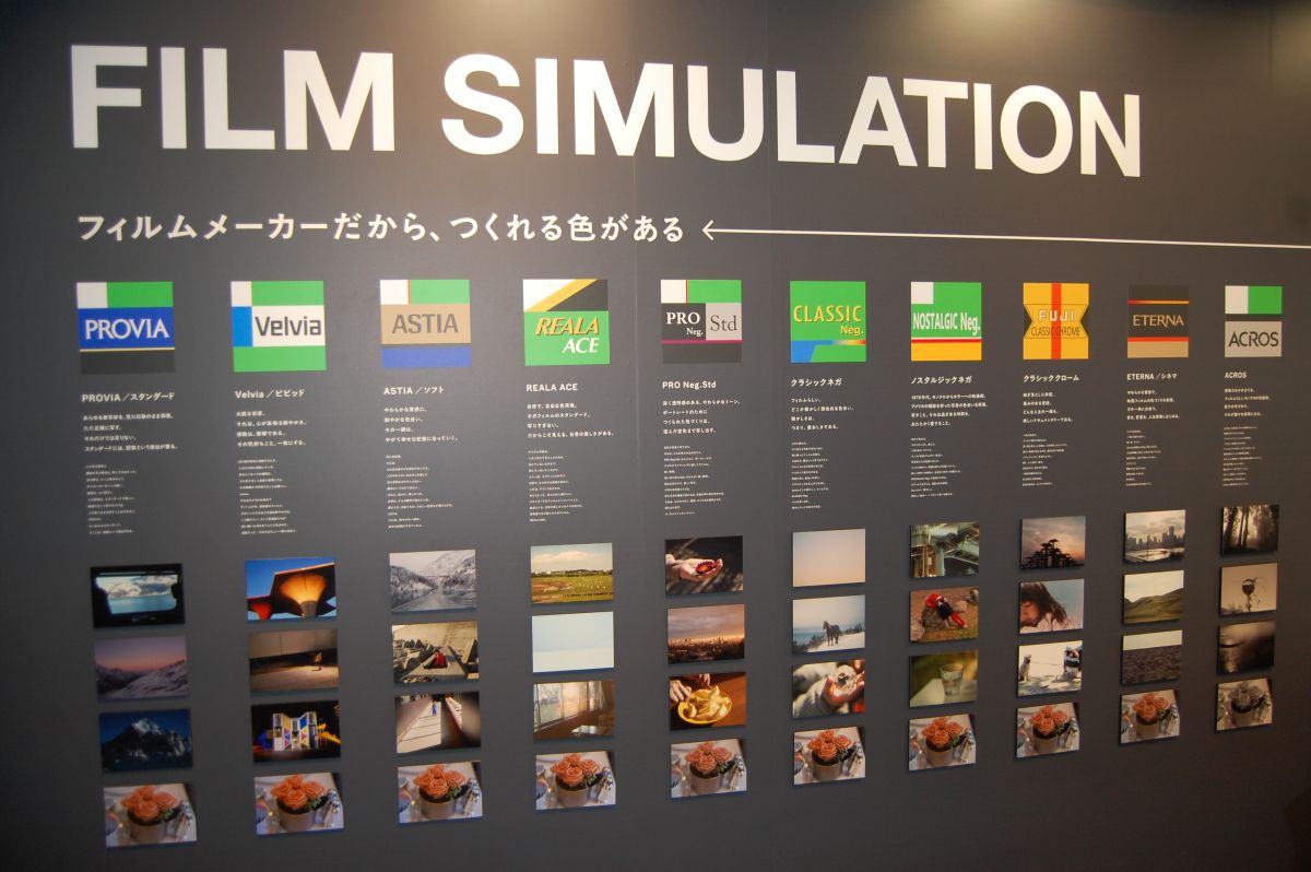 「色」のコーナーで取り上げるのは、Xシリーズの代名詞ともいえる「フィルムシミュレーション」。「若い方からもXシリーズはいい写真が撮れるという声が増えています。そのひとつの答えが、このフィルムシミュレーションです」というフィルムメーカーならではの技術。全20種類のなかから代表的な10種類をピックアップして紹介する。