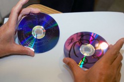 例えばThat'sブランドの製品の場合、温度25度/湿度50%程度の暗所環境で保存した場合、100年後もデータ保持が予測できる(生存確率99%以上)という結果を得ているという。また、キズに強く防塵/防汚性が高い「トリプルガード」コートを施したディスクも製造しており、会場では実際にスチールウールやマジックで記録面にキズ/ヨゴレを付け、「トリプルガード」と同社他製品の違いを見比べる実験も行われた。