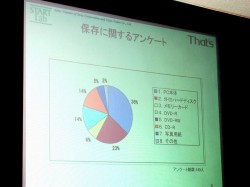 スタート・ラボの調査によれば、撮影した写真をディスクに保存している人は28%(うちDVD-R 14%、CD-R 14%)、PC本体に保存しているユーザーは36%、外付けHDDに保存しているユーザーは23%だという。小林氏は「ディスク、HDD、メモリーカードなど記録メディアにはおのおの利点がある。そのうちディスクにはCD-R/-RW、DVD±R/±RW/-RAM、BD-R/-REなど多くの規格があるため、何を選んだらいいのか分かりづらいと感じる方もいらっしゃるかも知れない」とし、メディア規格の整理とデータ用/録画用などの用途別ディスクの違いを解説したほか、パッケージに記載されている情報の読み取り方のほか、光ディスクの記録のしくみといった基本的な部分まで幅広く詳しく説明を行った。