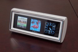 3つの1.5型 TFT液晶ディスプレイに写真・時計・カレンダーを自由に組み合わせて同時表示できるのが特徴。カレンダー/写真/時計、写真/写真/時計など7通りの組み合わせが可能だ。