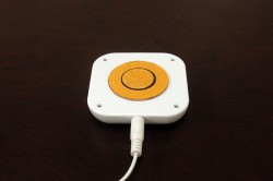口径33.8mmのアクチュエーター型スピーカーユニットを搭載し、壁に貼り付けて使用するモノラルスピーカー。貼り付けた場所を振動板として利用することができる。出力は5Wで、電源は単三電池2本を使用。約4時間の連続使用が可能だ。付属のリモコンは防水仕様(JIS4級相当)なので、たとえば浴室のドアにスピーカー部を貼り付けておけば、浴室内でリモコンを使って音量などを操作しながら音楽などを楽しむことができる。