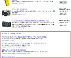また、一部の検索ワードに対しては、購入ガイドが自動的に表示されるようになった。例えば「デジカメ」で検索した場合、各商品の価格比較とともに、カメラの購入ガイド記事を掲載しているサイトへのリンクも表示される。
