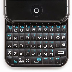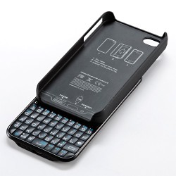 タイピングする際だけキーボードをスライドで引き出して使用できる一体型製品。キーボードはBluetoothでiPhone 4とペアリングする。