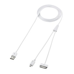 iPod/iPhone/iPadのデータ転送・充電と、スマートフォンの充電が1本で行える。ケーブル長は1.8m。カラーはブラックとホワイト。