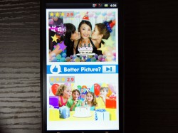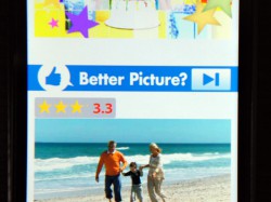 picture managerでの画像レーティングをゲーム感覚で行えるようにしたというアプリ。Androidスマートフォン端末内に保存している画像の中から2枚がランダムで表示され、より好みの1枚をタップすることでレーティングが変わっていく。なお、画像は保存しているフォルダなどが違っていても端末内のものすべてを検索、表示する。