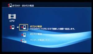 あとはビデオメニューの「おでかけ・おかえり転送」から「おでかけ転送」を実行し、リストから転送したいタイトルを選択して実行すれば転送される。