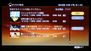 また、PSP側のメモリースティックに空き容量が不足している場合、転送可能な分だけを録画時間の早い順から転送してくれる。この場合、PSP側でタイトルを削除して、再びワンタッチ転送をすると、未転送のタイトルだけを転送してくれるなど、なかなか賢い。