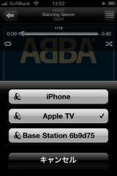 続いて音楽についても試してみた。…といっても、設定は特に必要なく、とても簡単だ。iPodアプリでいつも通りに楽曲を選んだあと、画面に現れるAirPlayをタップし、Apple TVを選択したら、それだけで操作は完了。すぐさまストリーミング配信が開始される。