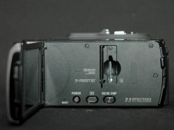 ビデオカメラ部は1/4.0型で総画素数420万画素の裏面照射CMOS“Exmor R”を使用したもので、これをダブルで搭載する。有効画素数は3D時で199万画素、2D時で265万画素となり、共にアクティブ手振れ補正機能を備え、補正時に画角が少し狭くなるのは従来と同様だ。ズームレンズは3D時で光学10倍、2D時は光学12倍。なお、少々残念だが3D時は静止画撮影が不可となっている。