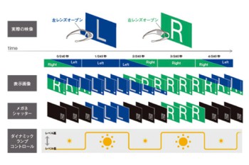 さて、プロジェクターでは一般的に、パネルの応答の遅延が起きることにより、どうしてもクロストークが発生してしまっていた。本機ではクロストークが発生しないタイミングでのみランプレベルをアップ。またシャッターの開閉とランプレベルの上げ下げのタイミングを完全に一致させず、クロストークが発生しやすいシャッター開き始めのタイミングではランプを光らせないことで二重像を視認させないという今とトールによりクロストークを抑えた。