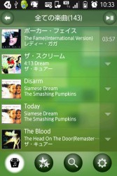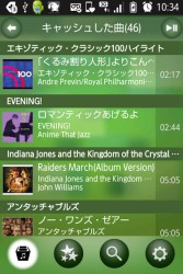 メニューは下部のアイコンから切り替える。一番左のアイコンは「ライブラリ」で、タップすると自分が聴いた曲名やアーティスト名、一度再生して端末のSDカードにキャッシュされた曲の一覧などが表示される。