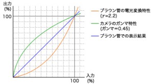 もちろん、現在主流の液晶やプラズマテレビは、ブラウン管のようなガンマ特性を持たず、高度にデジタル化されているので、リニアな信号を受け取れば難なくリニアに表示できる訳だが、ブラウン管テレビが残存する以上、カメラ撮影時のガンマ補正を止めるわけにも行かない。
