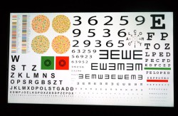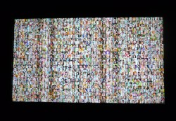 デモ機は静止画で視力診断表、道路地図、顔のコラージュ、ヒマワリ、N.Y.のビル街、パリの夜景などを表示。フルHDの場合、20Vでは読めなくなってしまう地図上の細かな街路名の書き込みがはっきり読み取れ、N.Y.のビル街は窓の中の室内が覗けてみえる精細度。目を凝らしていたギャラリーから次々に歓声が上がった。なお動画は金魚などの映像が公開されたが、本格的な画質の詰めはこれからという段階に止まっている。