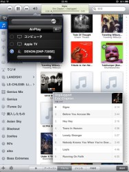 前記の機器構成でそのままiPhone4のアプリをAppleのRemoteアプリに切り替えて、再生先をDNP-720ASEに切り替えれば、iTunesのライブラリをそのまま楽しむことができる。ちなみにRemoteアプリはiPadで使った場合には大きい画面に合わせたUIを表示してくれる。Denon Remort Appもこのような使い方ができるとリスニング環境が更に快適になるのだが。