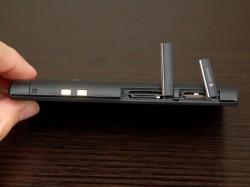 また、Xperia arcとの違いという点では、イヤホンジャックの位置も変わっており、新モデル2機種は本体上部に端子がある。Xperia arcでは本体左側面に端子が装備されており、イヤホンを付けたままジーンズなどのポケットに入れる際、少々不便を感じている(ストレートプラグのイヤホンだと若干ポケットに収納しづらい)記者にとっては嬉しい仕様変更だ。