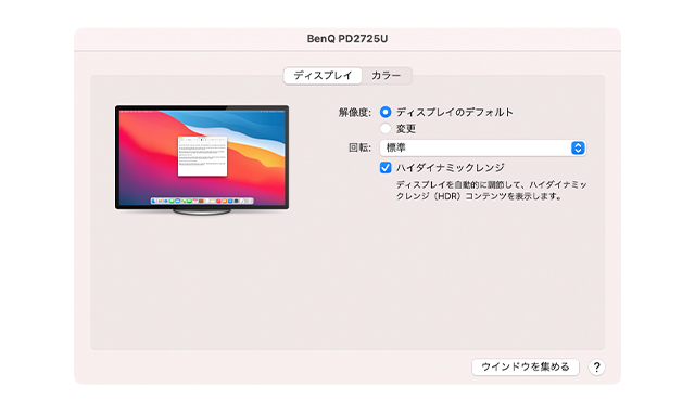 ディスプレイをHDMIやThunderboltで接続するだけで、適切なカラープロファイルが読み込まれるMacの場合、色の正確さという点では他のPCに比べて有利だが、本機ならそこに出荷時にキャリブレーション済であるという安心感も加わる。