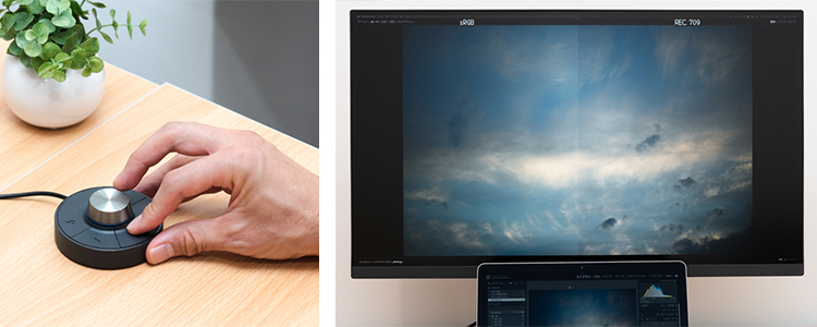 また、デザインの仕事はひとつのデータを紙とWebの両方で使う場合があるため、プリセットした3つの映像モードがボタンをクリックするだけで素速く切り換えられる独自のOSDコントローラー「ホットキーパック G2」や、本機に搭載された「DualView」機能もとても役立つと、機能面にも満足した様子だった。