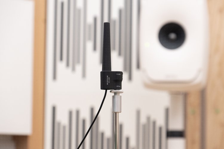 次にGLMを使って補正を実施する。作業は至って簡潔で、リスニングポイントに専用マイクを設置し、ソフトの指示に従ってスウィープ音を再生すると、すぐさまキャリブレーションが完了する。専用マイクロフォンから拾った測定データはクラウド上へアップロードされ、これまで数千ものスタジオでの実績に基づいたキャリブレーション・アルゴリズムで処理が行われた上で、GLMを制御するPCに自動ダウンロードされる。驚くべきはその処理速度で、今回のようにステレオであれば1分もかからないうちにそのすべてのプロセスが完了した。