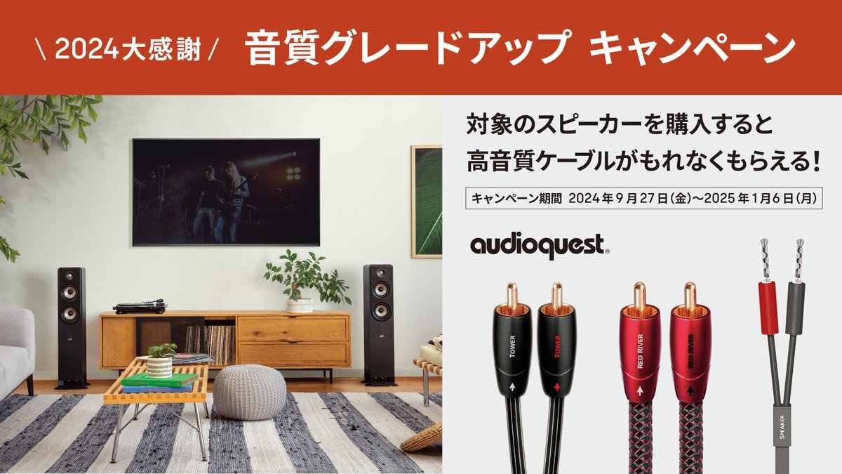 Polk Audioは2025年1月6日までケーブルプレゼントキャンペーンを実施しており、Reserveシリーズの「R700」「R600」「R500」を購入すると、記事中でも使用したスピーカーケーブルの「Q2」(3mペア・バナナプラグ仕様)、もしくはAudioQuestのRCAケーブル「Red River」(1.5mペア)がプレゼントされる。Reserveシリーズの「R200」「R100」、またはSignature Eliteシリーズの「ES60」「ES55」「ES50」「ES20」「ES15」の購入ではスピーカーケーブル「Q2」(2mペア・裸線仕様)、もしくはAudioQuestのRCAケーブル「Tower」(1.5mペア)がプレゼントされる。ぜひこの機会を活用してほしい。