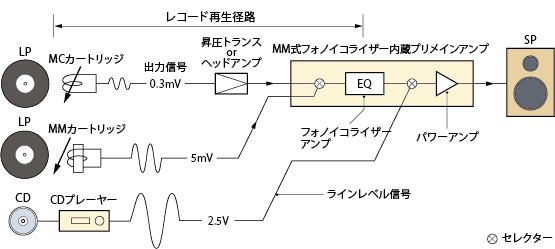 アナログプレーヤーからの出力信号(カートリッジの出力信号)は、ある種特殊な信号で、CDとはまるで違うものです。専用の機能を持つ増幅回路が必要なんです。
