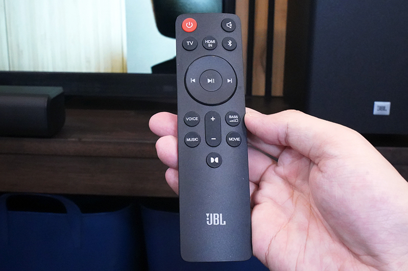 加えて、通常のテレビスピーカーでは再生が難しい重低音を、200W出力のワイヤレスサブウーファーによって再現する。サウンドバーとは2.4GHzワイヤレス接続が可能で、横幅200mmのスリムな設計により、限られた居住スペースでも導入しやすいのもポイントだ。また低音のレベルは、専用リモコンで5段階から調整可能なので、夜間の映画鑑賞時など近隣への音漏れが気になる場合などに活用できる。