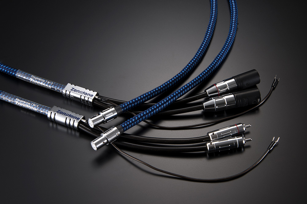 ゾノトーンの最高峰シリーズShupremeに初めて登場したフォノケーブルである。独自のハイブリッド構成は、7N相当高純度銅やPCUHDなど4種の線材を使用。LRをそれぞれダブルシールド2芯構造として1本の筐体に収め、その外側からさらにシールドを施した厳重な構成である。またアースと筐体は別とし、フローティングでのバランス伝送も可能だ。端子は全てオリジナルの精密切削加工。桁違いの情報量と精度が驚異的だ。