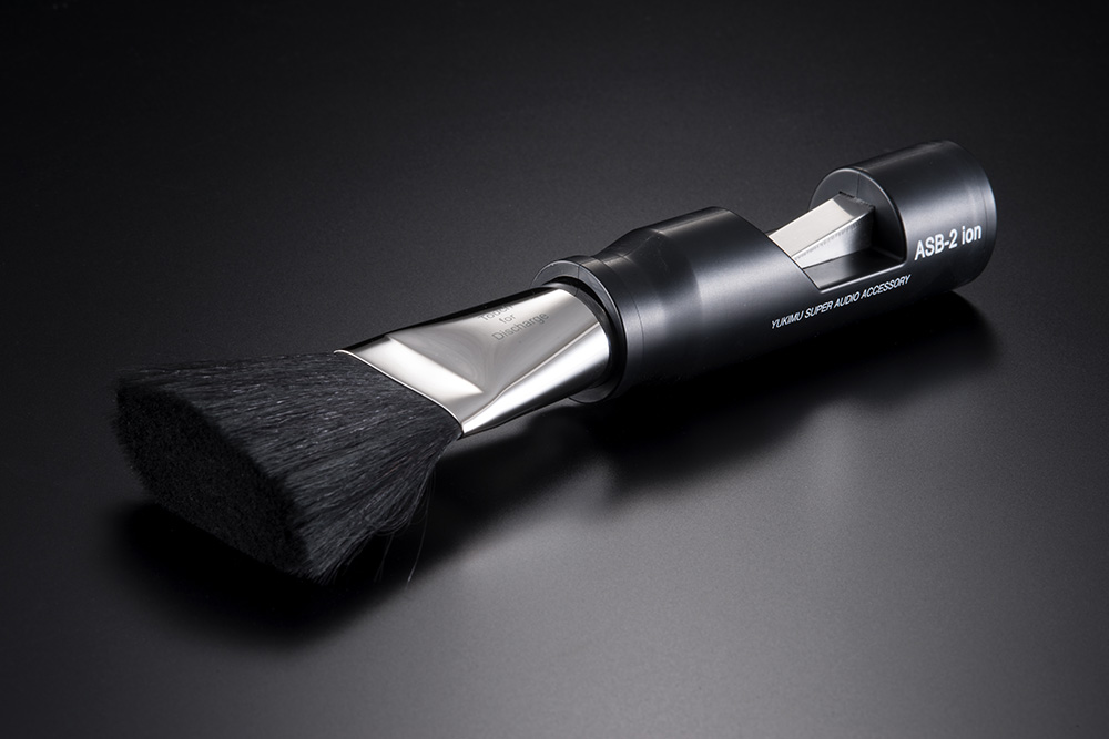 人気の除電ブラシ、ASB-1にイオン放射の機能を合体させたのが本品だ。レバー操作だけで内蔵のイオナイザー(圧電によるイオン発生機)が作動。+と-のイオンが発生する仕組みだ。レコードからやや離して放射すると効果はテキメン。冬場のパチパチ音も一気に静まり弱音のニュアンスが浮かび上がる。毛先もさらに極細な30ミクロンなので、音溝にたまった塵の除去効果も高い。電源いらずだし、究極の携帯除電グッズだ。