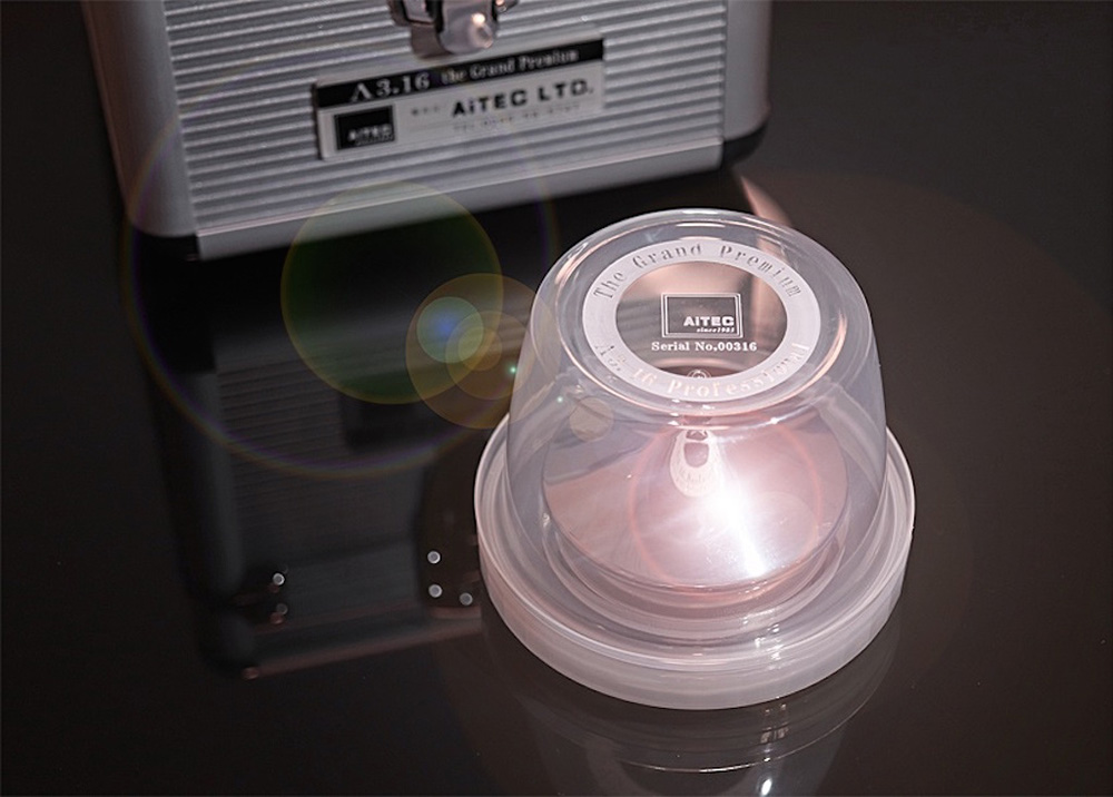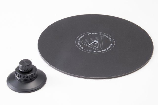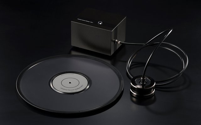 再生中の吸引を可能にした吸着式スタビライザーである。純マグネシウムのディスクにシーリング・ゴムを装備し、中心部に乗せた真鍮/マグネシウム製のスタビライザーを通してポンプから空気を吸引することで真空密着を実現する。動作音も極めて静寂。理想の連続吸引を実現し、吸着式の真価を発揮させた功績には極めて大きなものがある。