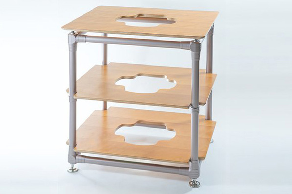 一段仕様のグランソロを多段化した、ラックのフラグシップ・モデルである。フレームは1mm厚のチタン・パイプ。内部には多重のシリコン・コーティングとレゾナンスキャンセル・ウェイトに羊毛を挿入して、吸音・制振に万全を期している。組み立ては超高強度接着剤。中段のスパイク支持は超々ジュラルミン削り出しである。棚板は強度や制振性を綿密に考慮した特殊積層合板。ソースの質感と量感を強力に引き出す効果が歴然である。