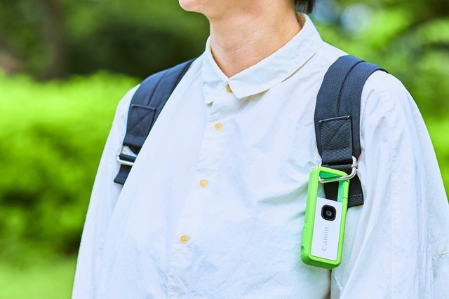 橋本 昨年12月に発売したのが「iNSPiC REC」です。カラビナ型のデザインを採用することで、バックやベルトに引っ掛けて気軽に持ち歩くことができます。外すのも簡単ですから、「ここは!」という瞬間を逃さずに撮影ができる。「ブルー」「グリーン」「ピンク」「グレー」の4色展開で、さらに、着せかえジャケットを用意していますから、自分好みのスタイルにデザインが変えられます。