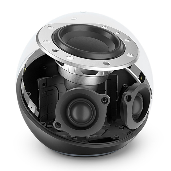 新しいEchoシリーズはデザインを球体として、正面向きにスピーカーユニットを配置した。上位のEchoは3インチのウーファー1基と2つのトゥイーター、Echo Dotは1.6インチのフルレンジユニットを1基搭載している。