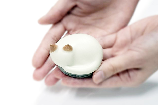 NEKOの充電ケースは、デスクに置いておきたいかわいさを目指し、お気に入りの寝床で小さく丸くなって眠る猫をモチーフにしました。寝床からこぼれ落ちそうなボリューム感や、手足がしまわれて体の部位が曖昧な感じの「猫らしさ」にこだわっています。