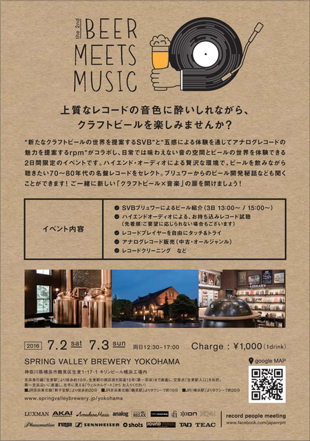 会場は横浜・生麦のキリンビール工場の敷地内にあるスプリングバレーブルワリー横浜で、両日12:30〜17:00まで。入場料は1ドリンク込みで¥1,000。本イベントは、スプリングバレーブルワリーと、レコードの魅力を伝えるためのイベントを開催しているrecord people meetingの協同開催となる。