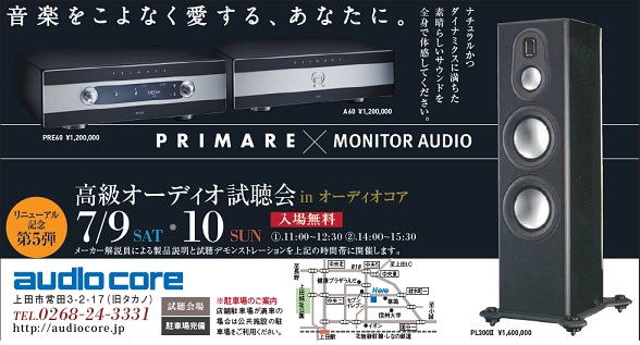 今回の試聴会は、同店のオープン記念イベントの最終回として開催されるものとなる。当日は「PL300II」を、同じく同社が取り扱うスウェーデンのハイエンドメーカー、プライマーのセパレートアンプ「PRE60/A60」でドライブ。両日ともにメーカー担当員が来場し、製品説明から試聴デモンストレーションを行う予定になっている。