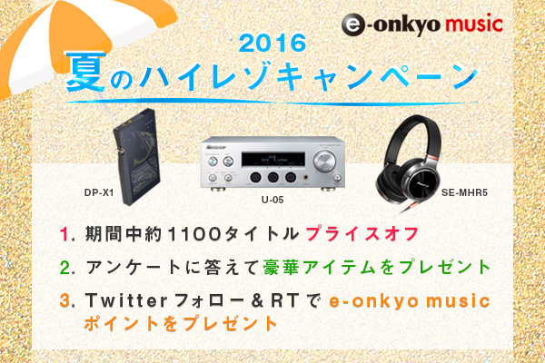 e-onkyo musicにて、8月8日正午から「e-onkyo music 2016 夏のハイレゾキャンペーン」がスタートした。期間は8月31日(水)正午まで。