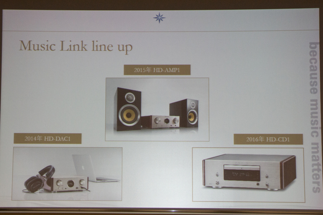 Music Linkシリーズとしては、デザイン性とHi-Fiサウンドを兼ね備えたコンパクトなモデルということで、デスクトップで楽しむスタイルもアピールしていくとのこと。HD-AMP1をはじめ、「主要なソースを全て賄えること」も強みだと高山氏は述べていた。
