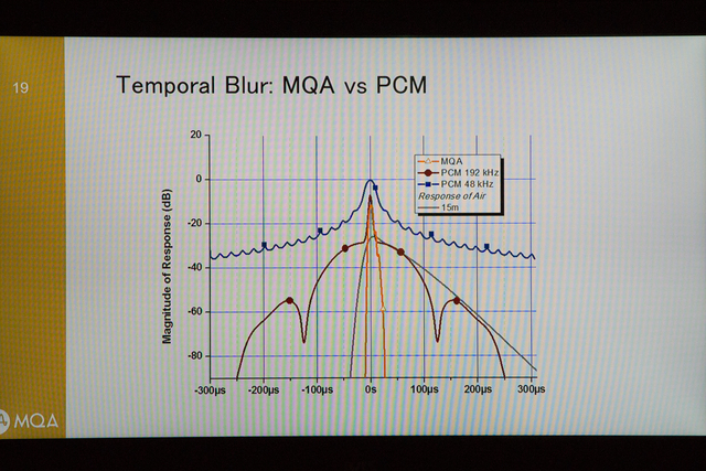 時間解像度の向上により、空間情報がより稠密になり、音の定位や音場をより正確に再現できるようになるという。この点で、MQAは、従来のロスレス音源に対しても優位性を持っていると同氏は語っていた。
