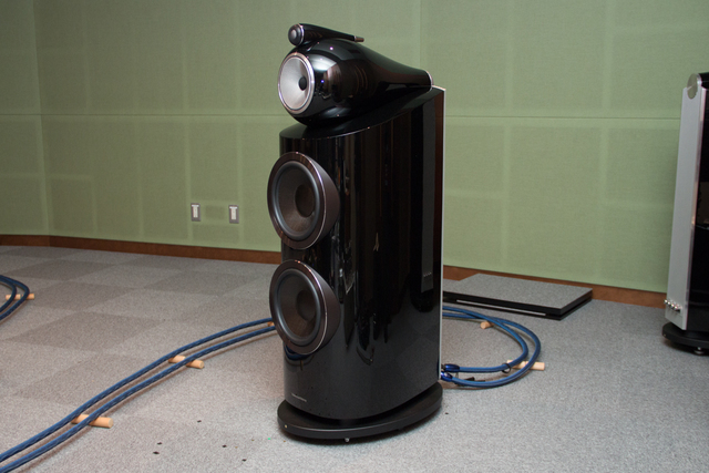 800 D3シリーズは、従来の800 Diamondシリーズから、ダイアモンド・トゥイーターを除くほぼ全てを刷新したが、その点は「800 D3」も同様だ。ミッドレンジには従来のケブラーコーンに替えてコンティニアム・コーンを採用。エアロフォイル・コーンによるウーファー、アルミ製のミッドレンジ用ハウジング“タービンヘッド”、アルミ無垢削り出しのトゥイーター・ハウジング、連続曲線を描くリバースラップ・キャビネット、マトリクス構造の内部補強などを、802 D3以下のモデルと同様に採用する。